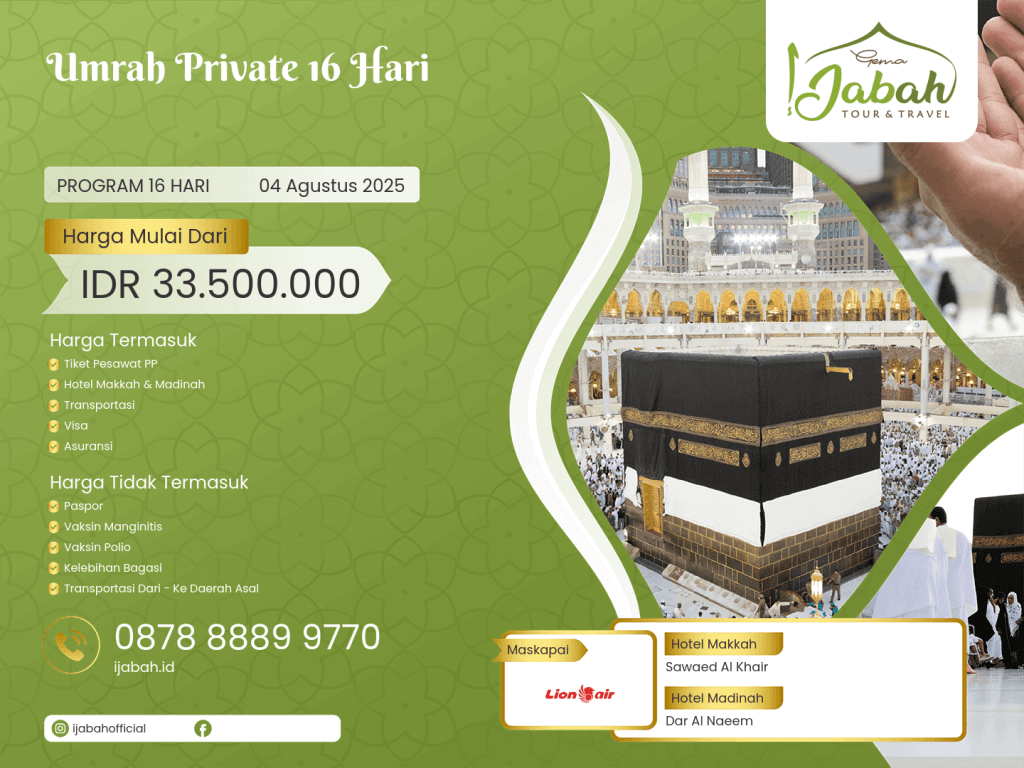 - Waktu Pelunasan dilakukan paling lambat 30-45 hari sebelum tanggal keberangkatan.